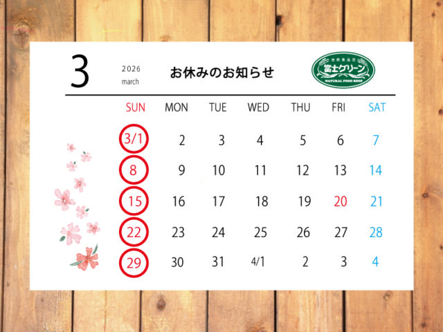 2026年3月 営業日のお知らせ