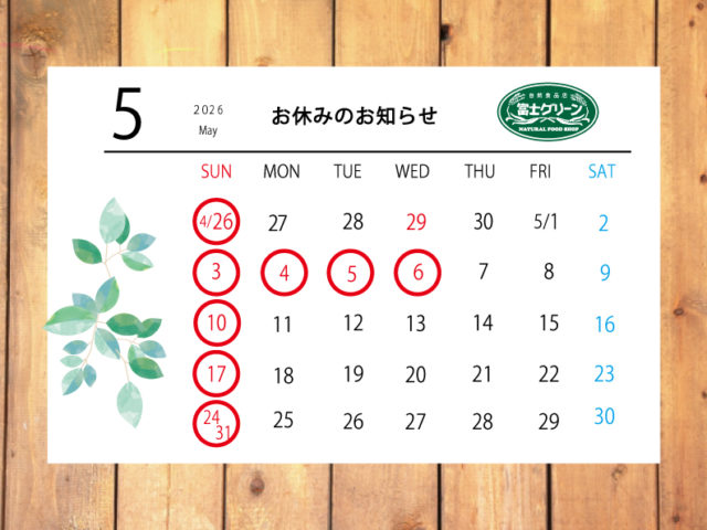 2026年5月 営業日のお知らせ