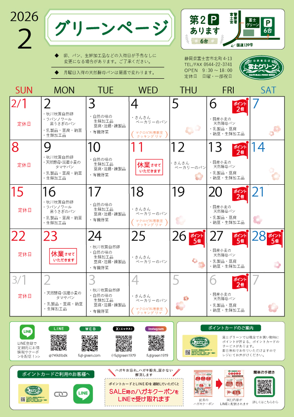 2026.01.24入荷情報・営業のお知らせ グリーンページ 2026年 2月